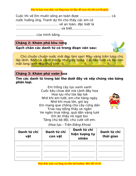(Hoa lựu - Trần Đăng Khoa) Danh từ chỉ Danh từ chỉ Danh từ chỉ Danh từ chỉ hiện tượng tự vật con vật thời gian nhiên