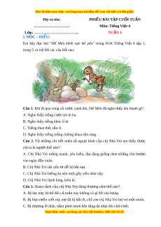 - Tailieugiaovien.com.vn giới thiệu phiếu bài tập cuối tuần môn Tiếng việt lớp 4 mới nhất năm 2022 - 2023 nhằm giúp Giáo viên có thêm tài liệu tham khảo Tiếng việt lớp 4.
