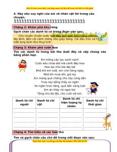 Tìm các danh từ trong bài thơ dưới đây và xếp chúng vào bảng phân loại.