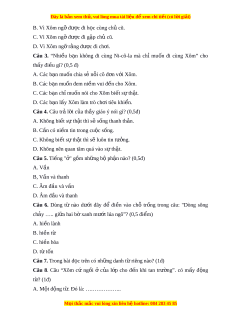 ạ không đi cùng Ni-cô-la mà chỉ mu n ố đi cùng Xôm” cho thấy đi u ề gì? (0,5 đ) A. Các b n m ạ uốn chia s n ẻ ỗi cô đ n v ơ i ớ Xôm. B. Các b n m ạ uốn đem ni m ề vui đ n cho X ế ôm. C. Các b n ch ạ m ỉ u n nói ố cho Xôm bi t ế sự th t ậ . D. Các b n l ạ ấy Xôm làm trò ch i ơ tiêu khi n. ể Câu 4. Câu tr l ả i ờ c a