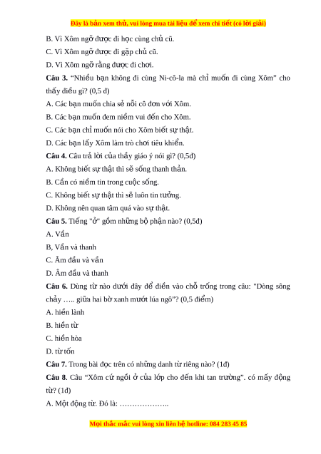 ệ đ xe ể m chi ti t ế (có l i ờ gi i ả ) B. Vì Xôm ng đ ỡ ư c ợ đi h c ọ cùng ch cũ. ủ C. Vì Xôm ng đ ỡ ư c ợ đi g p ặ ch cũ. ủ D. Vì Xôm ngỡ r ng đ ằ ư c đi ợ ch i ơ . Câu 3. “Nhi u ề b n
