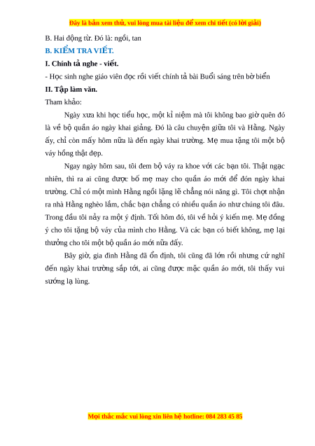 ệ đ xe ể m chi ti t ế (có l i ờ gi i ả ) B. Hai đ ng ộ t . Đ ừ ó là: ………………… C. Ba đ ng t ộ . Đ ừ ó là: …………….. D. Bốn đ ng t ộ , Đ ừ ó là: …………….. B. KIỂM TRA VI T Ế . (10 đi m ể ) I. Chính t nghe - ả vi t ế . (5 đi m ể ) Bu i