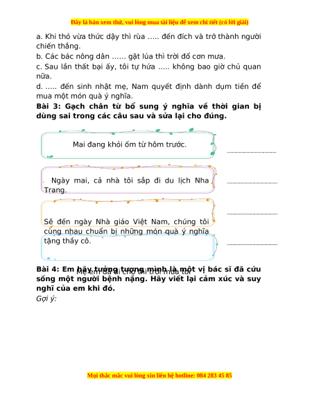 Bài 3: Gạch chân từ bổ sung ý nghĩa về thời gian bị