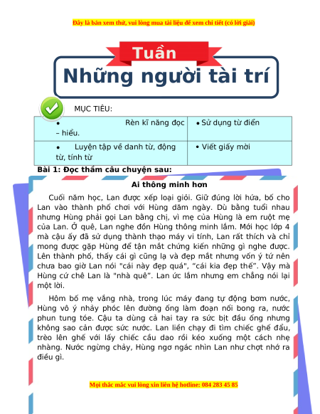 của Lan. Ở quê, Lan nghe đồn Hùng thông minh lắm. Mới học lớp 4