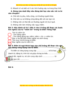 - Tailieugiaovien.com.vn giới thiệu phiếu bài tập cuối tuần môn Tiếng việt lớp 4 bộ Chân trời sáng tạo mới nhất nhằm giúp Giáo viên có thêm tài liệu tham khảo Tiếng việt lớp 4.