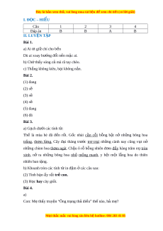 ấ óng cả mà rã tay chèo. c) Th ng không ki ắ êu, b i ạ không n n. ả Bài 2. (1) đang (2) sẽ (3) sẽ (4) sẽ (5) đang (6) đã Bài 3. a) G ch d ạ ư i ớ các tính t : ừ Thế là mùa hè đã đ n ế r i ồ . G c ố nhài c n ằ cỗi bỗng b t ậ nở nh ng ữ bông hoa tr ng ắ , th m ơ l ng. ừ Cây đ i ạ tháng trư c ớ trơ tr i ụ nh ng ữ cành nay cũng v t ụ nở nh ng ữ chùm hoa th m ơ ngát. Ch u ậ ô r ỗ b ng ỗ nhiên đ m ơ đầy hàng trăm n ụ tròn xinh, nở ra nh ng ữ bông hoa nhỏ m ng ỏ manh, y h t ệ m t ộ l ng ẵ hoa do thiên nhiên ban t ng. ặ