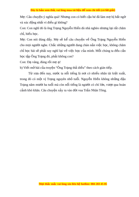 ệ đ xe ể m chi ti t ế (có l i ờ gi i ả ) D. Vì trong bài thi c a ủ mình, Nguy n ễ Hi n ề có nh c ắ t i ớ vi c ệ th ả di u ề nên nhân dân m i ớ phong t ng cho ặ là “Ông Tr ng t ạ hả di u”. ề Câu 4. Câu t c ụ ngữ ho c ặ thành ngữ nào dư i