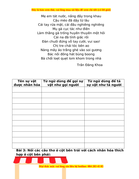 Bài 3: Nối các câu thơ ở cột bên trái với cách nhân hóa thích