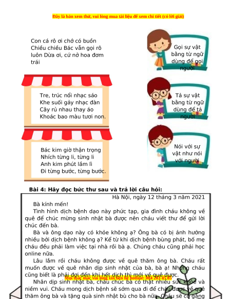 Bài 4: Hãy đọc bức thư sau và trả lời câu hỏi: