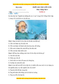 - Tailieugiaovien.com.vn giới thiệu phiếu bài tập cuối tuần môn Tiếng việt lớp 4 mới nhất năm 2022 - 2023 nhằm giúp Giáo viên có thêm tài liệu tham khảo Tiếng việt lớp 4.