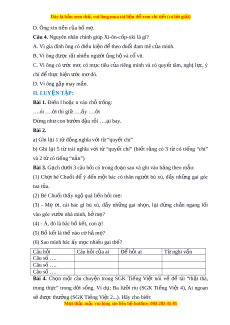 ề hoặc n vào chỗ trống: ….ói …. i ờ thì gi …. ữ y …. ấ i ờ Đ ng nh ừ con b ư ư m ớ đ u r ậ i ồ …. i ạ bay. Bài 2. a) Ghi l i ạ 1 t đ ừ ng nghĩ ồ a v i ớ t “quy ừ t ế chí” b) Ghi l i ạ 5 từ trái nghĩa v i ớ từ “quy t ế chí” (bi t ế r ng ằ có 3 từ có ti ng ế “chí” và 2 t có t ừ i ng “n ế n ả ”) Bài 3. Gạch dư i ớ 3 câu h i ỏ có trong đo n s ạ au và ghi vào b ng t ả heo m u: ẫ (1) Ch t ợ bé Chu i ố để ý đ n ế m t ộ bác có thân ngư i ờ bù xù, đ y ầ nh ng ữ gai góc tua t a. ủ (2) Bé Chuối th y ng ấ quá ộ li n ề h i ỏ m : ẹ (3) - Mẹ i