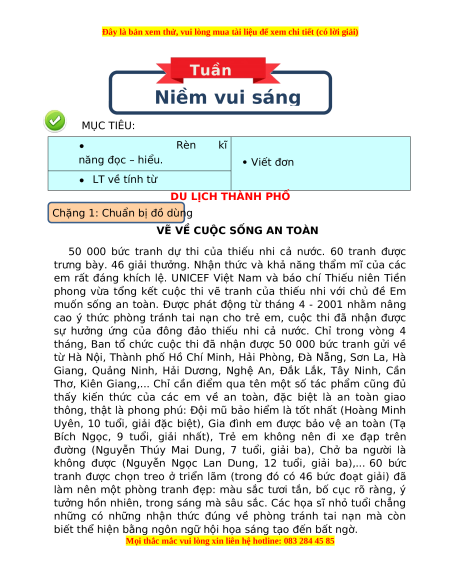 Tuần Niềm vui sáng MỤC TIÊU: Rèn kĩ năng đọc – hiểu. Viết đơn LT về tính từ DU LỊCH THÀNH PHỐ
