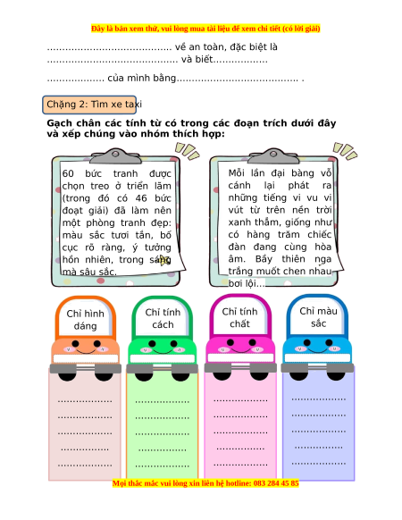 ………….…… của mình bằng…………………………………. . Chặng 2: Tìm xe taxi