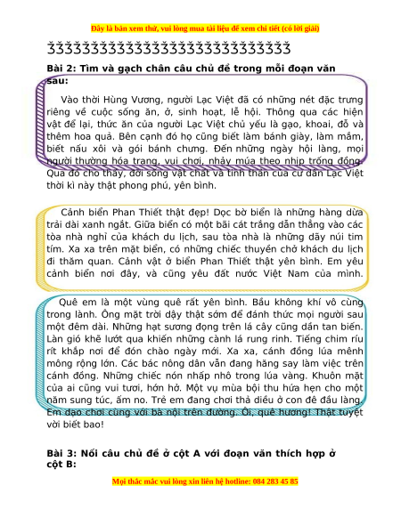 Bài 3: Nối câu chủ đề ở cột A với đoạn văn thích hợp ở cột B: