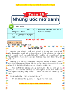 Tuần 16 Những ước mơ xanh MỤC TIÊU: Rèn kĩ