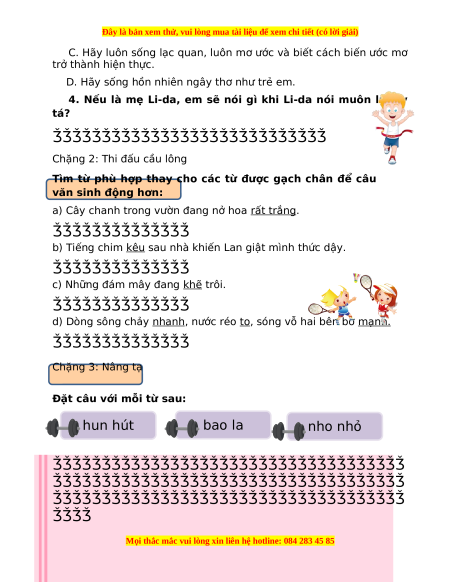 - Tailieugiaovien.com.vn giới thiệu phiếu bài tập cuối tuần môn Tiếng việt lớp 4 bộ Chân trời sáng tạo mới nhất nhằm giúp Giáo viên có thêm tài liệu tham khảo Tiếng việt lớp 4.