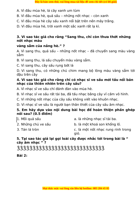 Bài 1: Đọc thầm bài đọc sau: Cây âm nhạc