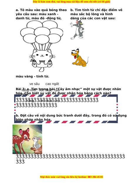 Bài 3: a. Tìm trong bài “Cây âm nhạc” một sự vật được nhân rung rinh nốt nhạc tấu