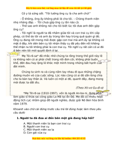 Khoanh vào chữ cái đứng trước câu trả lời đúng hoặc làm theo yêu cầu dưới: