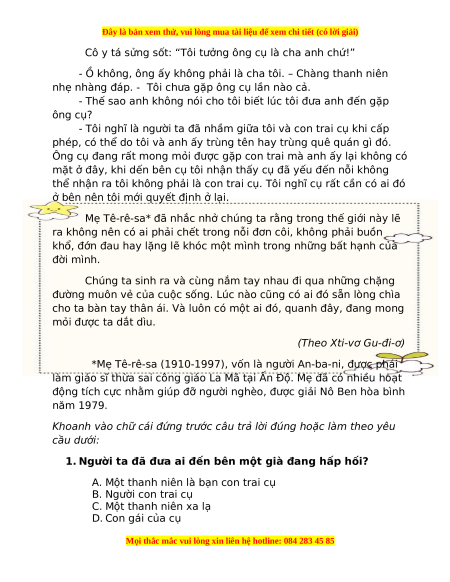 3. Tại sao anh thanh niên đã ngồi suốt đêm bên cụ già? A. Vì không biết đi đâu B. Vì cụ già là cha anh
