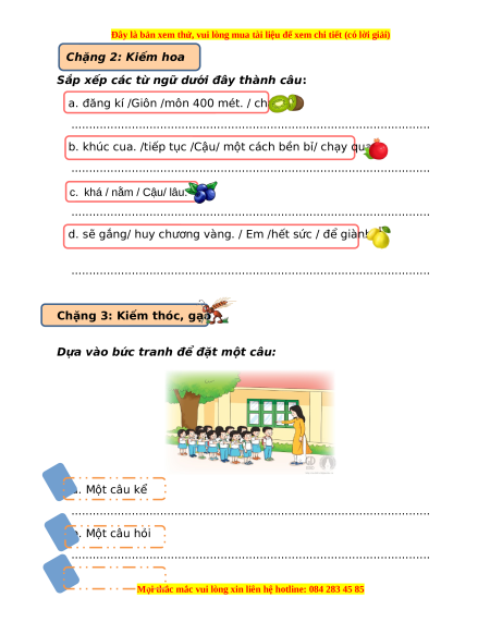 Dựa vào bức tranh để đặt một câu: a. Một câu kể