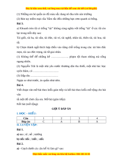 ậ dìu ………………………… Ng a xe nh ự ư trư c, ớ áo qu n nh ầ nêm ư . Bài 4. Vi t ế đo n ạ văn m bài ở theo ki u ể gián ti p ế và k t ế bài theo ki u m ể r ở ng cho bài ộ văn t m ả t ộ đồ ch i ơ c a ủ em. Mở bài (gián ti p) ế : K t ế bài (m r ở ng ộ ): G I Ợ Ý ĐÁP ÁN I. Đ C Ọ – HIỂU: Câu 1 2 3 4 Đáp án C A B A II. LUYỆN T P Ậ : Bài 1.