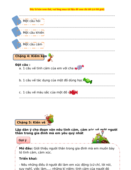 ..................................................................................................... Chặng 4: Kiếm kẹo Đặt câu :