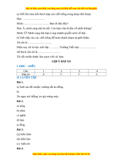 ủ ôi là …………………… Tôi r t ấ muốn đư c ợ làm quen v i ớ các b n. ạ G I Ợ Ý ĐÁP ÁN I. Đ C Ọ – HIỂU Câu 1 2 3 4 Đáp án A C C C II. LUYỆN T P Ậ Bài 1. a) Sinh sau đ m ẻ u n; ộ xư ng s ơ t ắ da đ ng. ồ b) Ăn ngay nói th ng; ẳ tre già măng m c. ọ Bài 2. a) nâng b) nhân c) nghĩa d) b n ạ e) l ng ỏ Bài 3. (a) hi n l ề ành (b) hi n hào ề (c) hi n t ề ừ Bài 4. M i