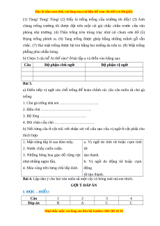 ộ cây có bóng mát mà em thích. G I Ợ Ý ĐÁP ÁN I. Đ C Ọ – HIỂU: Câu 1 2 3 4 Đáp án B A C C M i