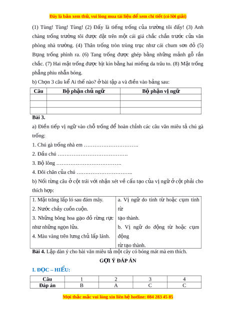 a. Vị ngữ do tính từ ho c ặ c m ụ tính 2. Nư c ch ớ y cu ả ồn cu n. ộ từ 3. Nh ng ữ bông hoa g o ạ đỏ r ng ừ r c ự t o t ạ hành. nh nh ư ng ng ữ n l ọ a. ử b. Vị ngữ do đ ng ộ từ ho c ặ c m ụ 4. Màu vàng trên l ng ch ư ủ l p l ấ ánh. đ ng ộ t t ừ o t ạ hành. Bài 4. L p dàn ý cho ậ bài văn miêu t m ả t
