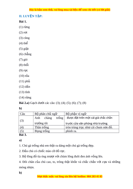 ệ đ xe ể m chi ti t ế (có l i ờ gi i ả ) II. LUYỆN T P Ậ : Bài 1. (1) r ng ừ (2) r i ơ (3) cũng (4) thể (5) gi t ậ (6) ch ng ẳ (7) gió (8) th i ổ (9) r c ự (10) t a ỏ (11) ph ủ (12) dần (13) tĩnh (14) r ng ừ Bài 2.a) G ch ạ dư i