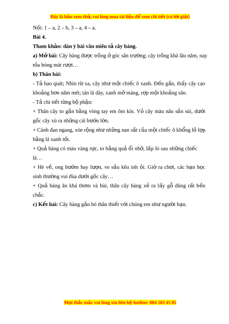Bài 4. L p dàn ý cho bài văn miêu t m t cây có bóng mát mà em thích.ậ ả ộ