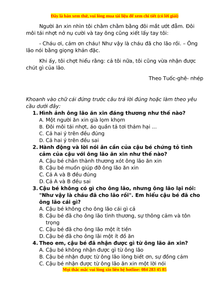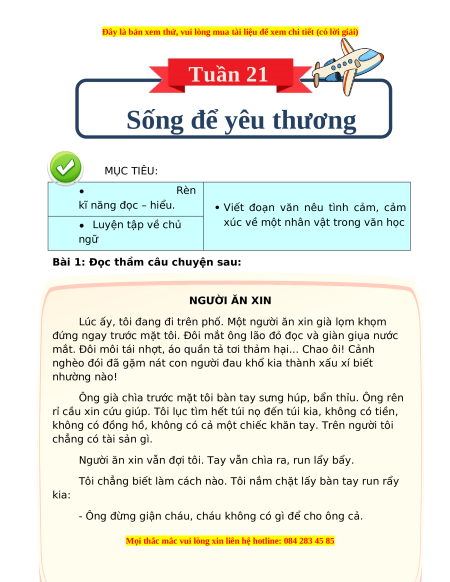 Bài 1: Đọc thầm câu chuyện sau: NGƯỜI ĂN XIN