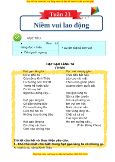 Tuần 23 Niềm vui lao động MỤC TIÊU: Rèn kĩ năng đọc – hiểu.