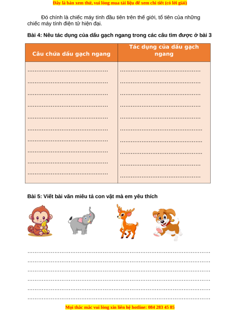 Bài 5: Viết bài văn miêu tả con vật mà em yêu thích