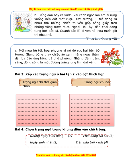 Bài 4: Chọn trạng ngữ trong khung điền vào chỗ trống.