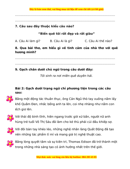Bài 4. Đặt câu hỏi cho bộ phận gạch chân trong những câu sau:
