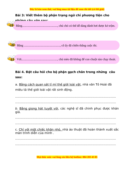 Bài 3: Viết thêm bộ phận trạng ngữ chỉ phương tiện cho những câu văn sau: