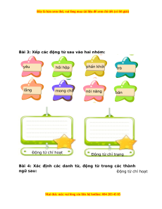 Bài 3: Xếp các động từ sau vào hai nhóm: yêu hồi hộp phấn khởi trò thương chuyện lắng mong chờ nói năng băn nghe khoăn Động từ chỉ hoạt Động từ chỉ trạng động thái
