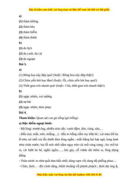 ệ đ xe ể m chi ti t ế (có l i ờ gi i ả ) a) (1) thám không (2) thám báo (3) thám hi m ể (4) thám thính b) (1) du lịch (2) du canh, du cư (3) du ngo n ạ Bài 3. a) (1) Bông hoa này đ p quá ẹ ! (ho c: