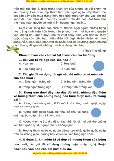 1. Bài văn tả vẻ đẹp của hoa nào ? A. Hoa lan C. Hoa bưởi B. Hoa bằng lăng D. Hoa nhài