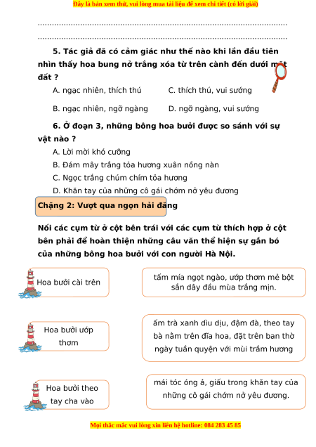 6. Ở đoạn 3, những bông hoa bưởi được so sánh với sự vật nào ? A. Lời mời khó cưỡng