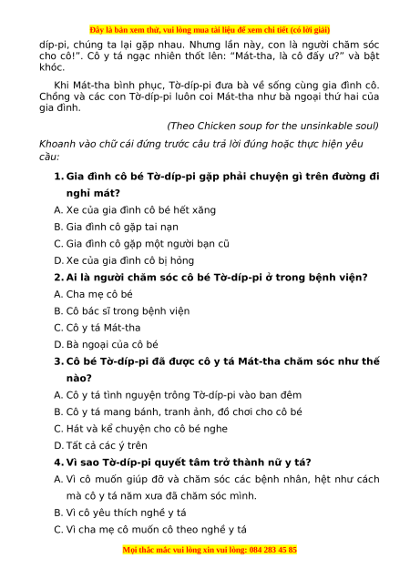 2. Ai là người chăm sóc cô bé Tờ-díp-pi ở trong bệnh viện? A. Cha mẹ cô bé