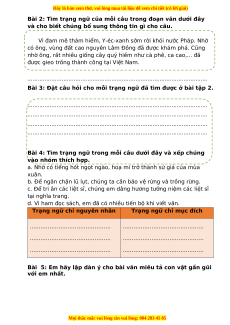 Bài 3: Đặt câu hỏi cho mỗi trạng ngữ đã tìm được ở bài tập 2.