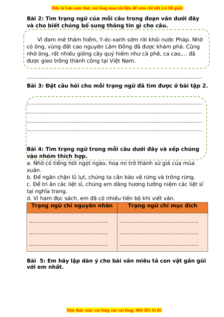 Trạng ngữ chỉ mục đích, nguyên nhân