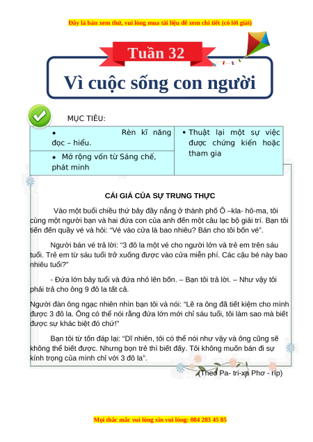 kính trọng của mình chỉ với 3 đô la”. (Theo Pa- tri-xa Phơ - ríp)