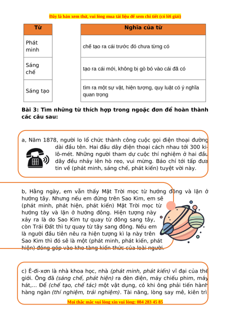 giới. Ông đã (sáng chế, phát hiện) ra đèn điện, máy chiếu phim, máy