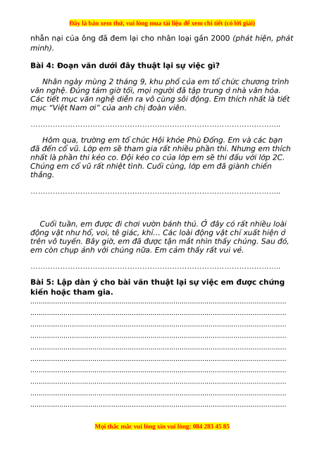 Bài 5: Lập dàn ý cho bài văn thuật lại sự việc em được chứng kiến hoặc tham gia.
