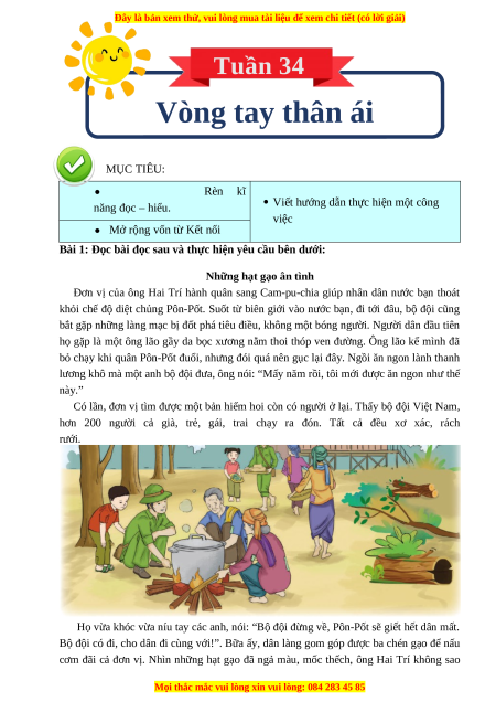 Tuần 34 Vòng tay thân ái MỤC TIÊU: Rèn kĩ năng đọc – hiểu.