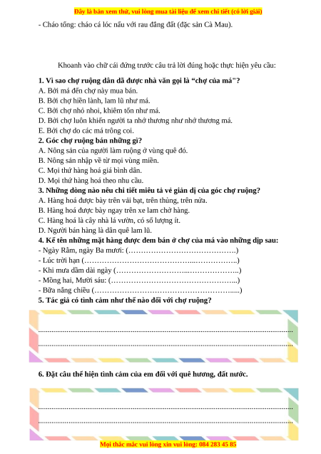5. Tác giả có tình cảm như thế nào đối với chợ ruộng?